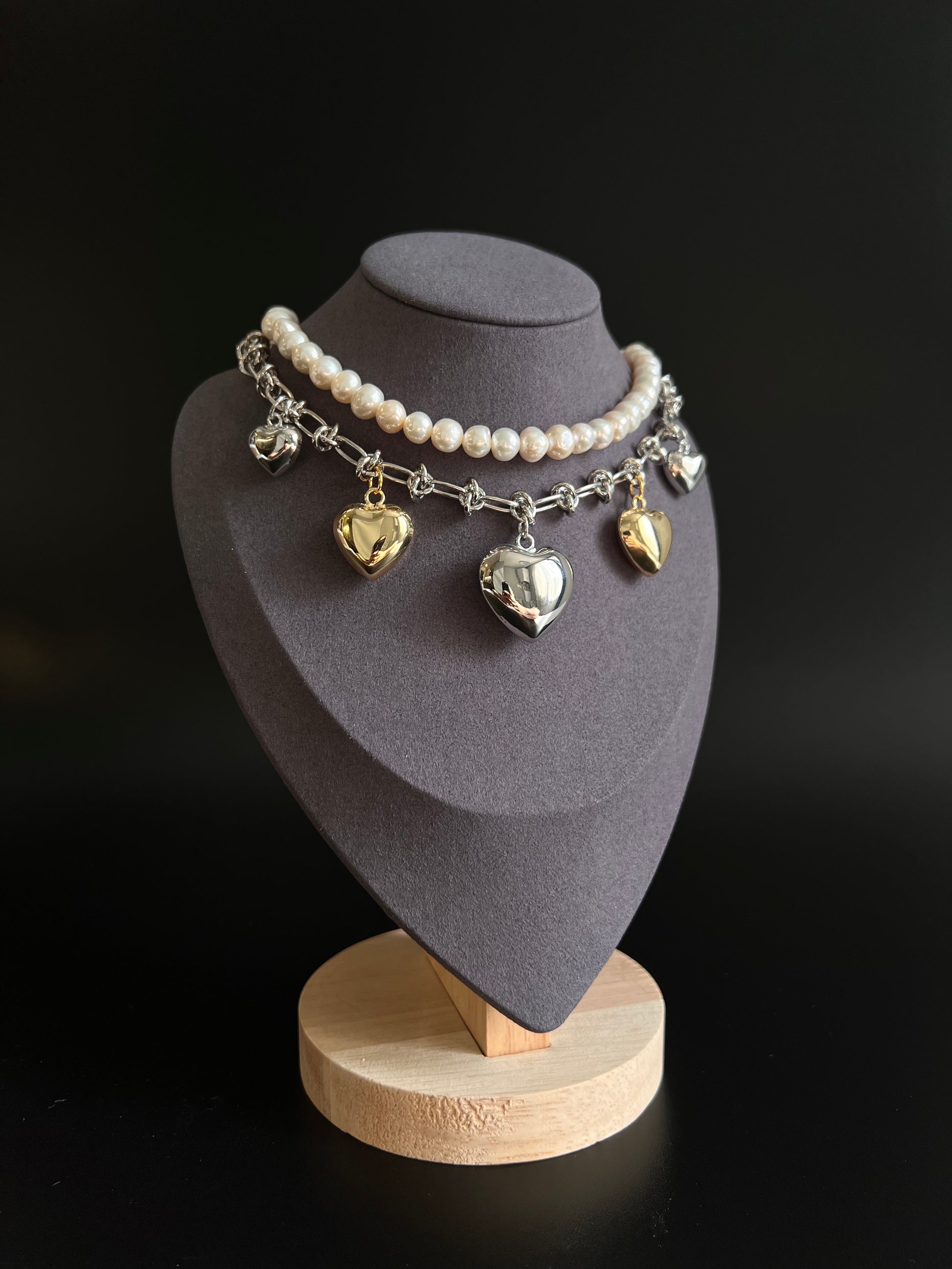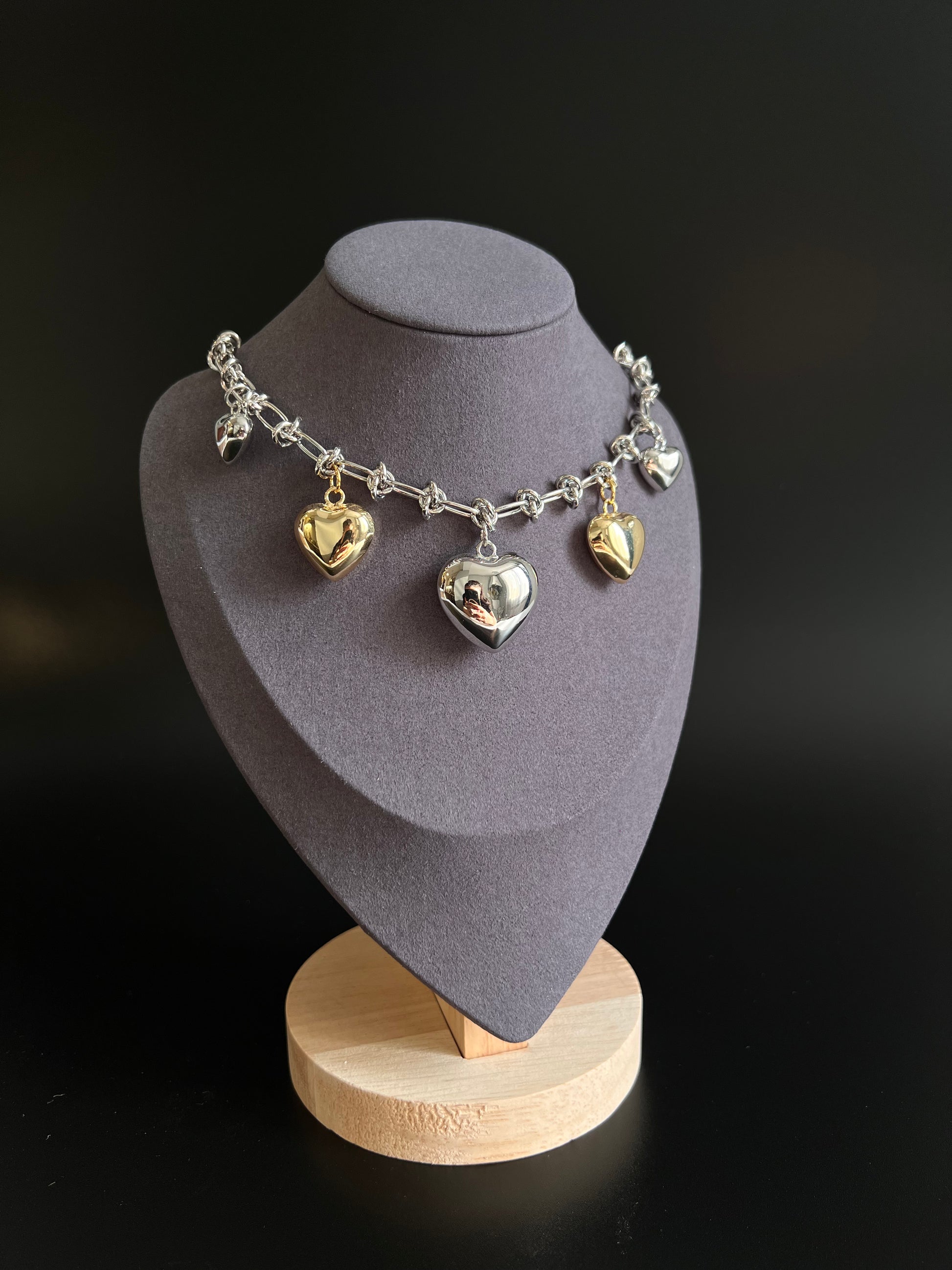 Five shining hearts serve as a reminder of endless tenderness, where cool silver meets warm gold, uniting two energies in a single breath.