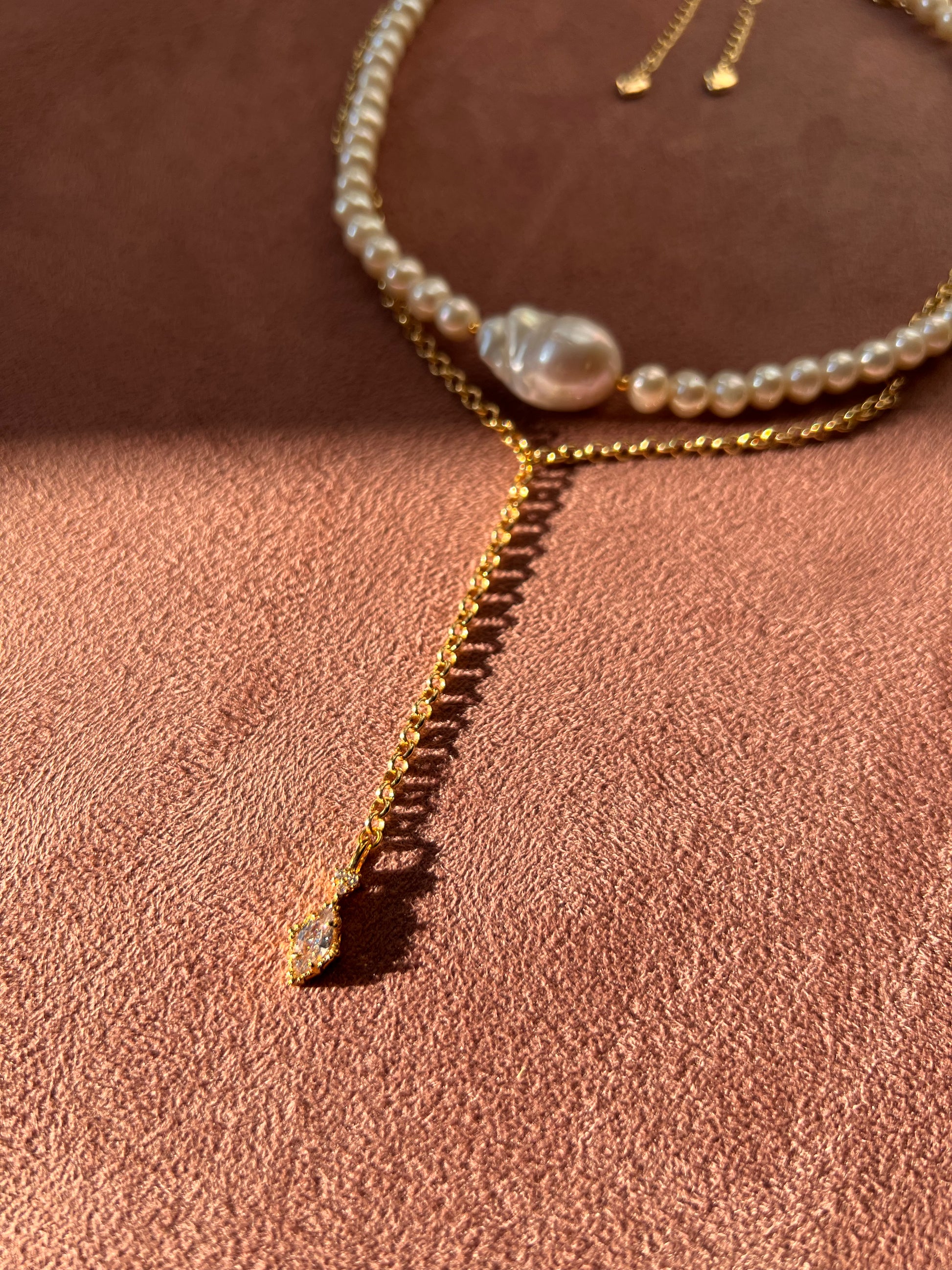 The gold-plated chain flows gracefully, forming an elegant line that completes the look.