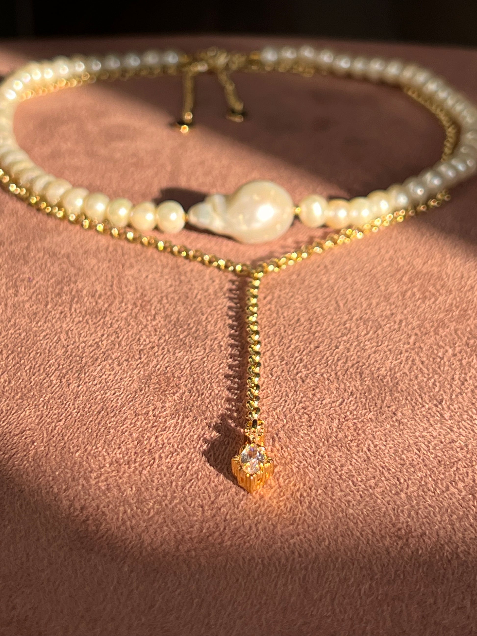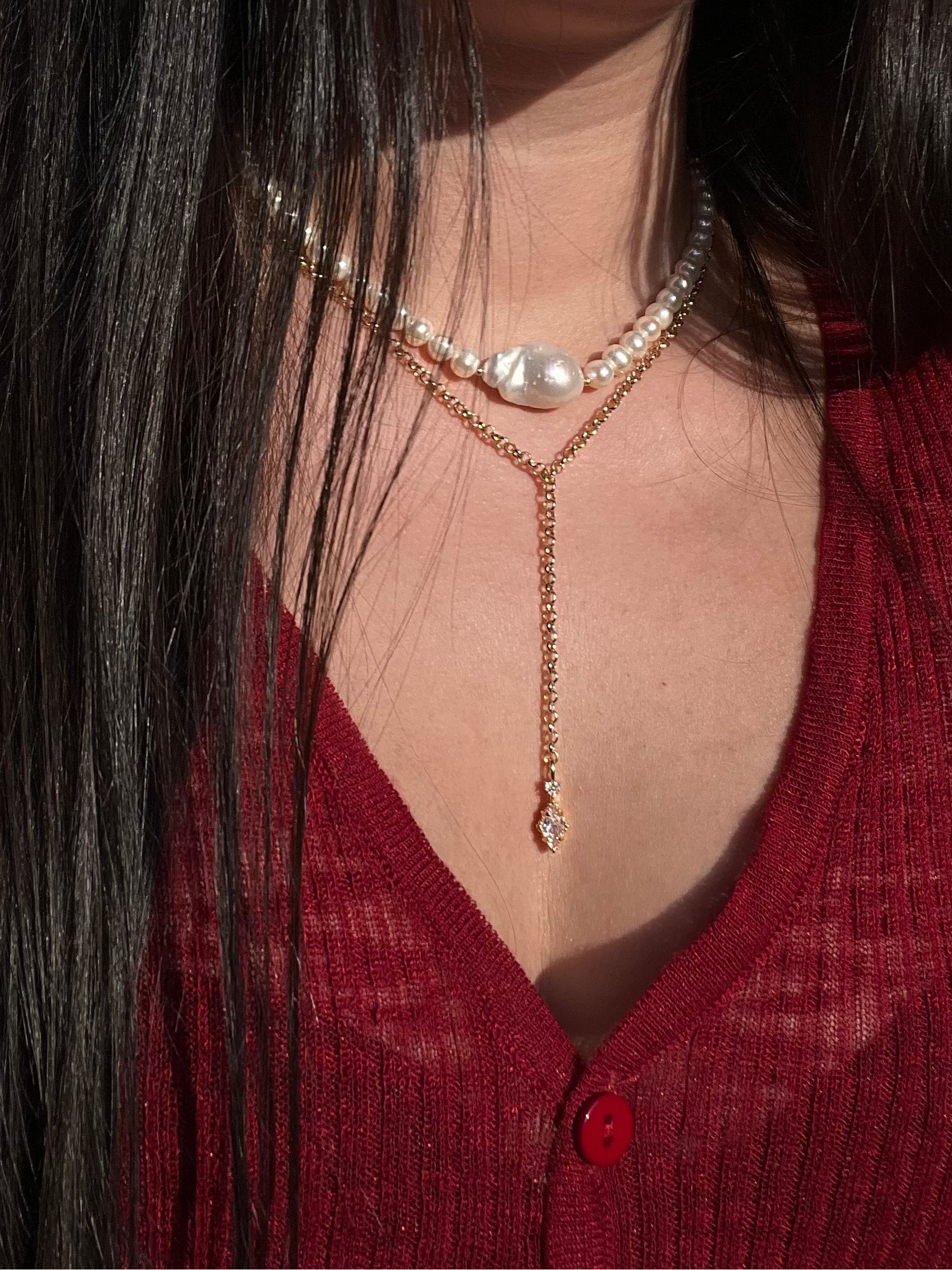 At its end hangs a cubic zirconia pendant — the final spark of radiance, captured in motion.
