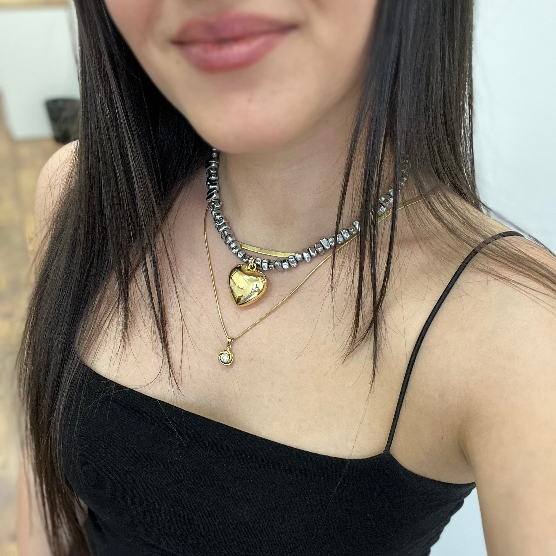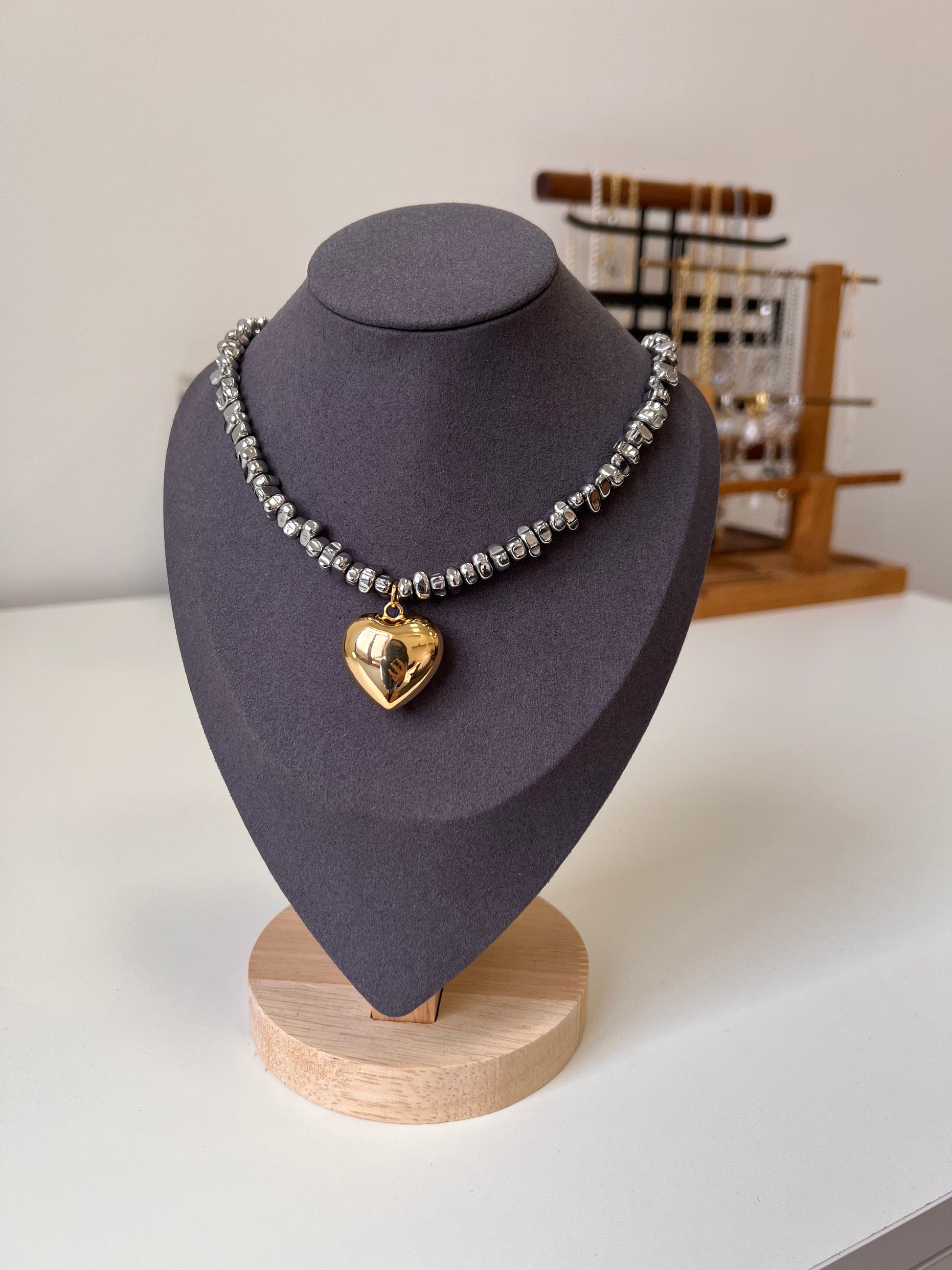 The dark hematite shines with the cool gleam of the night, while the golden heart at its center symbolizes the warmth that lives within.