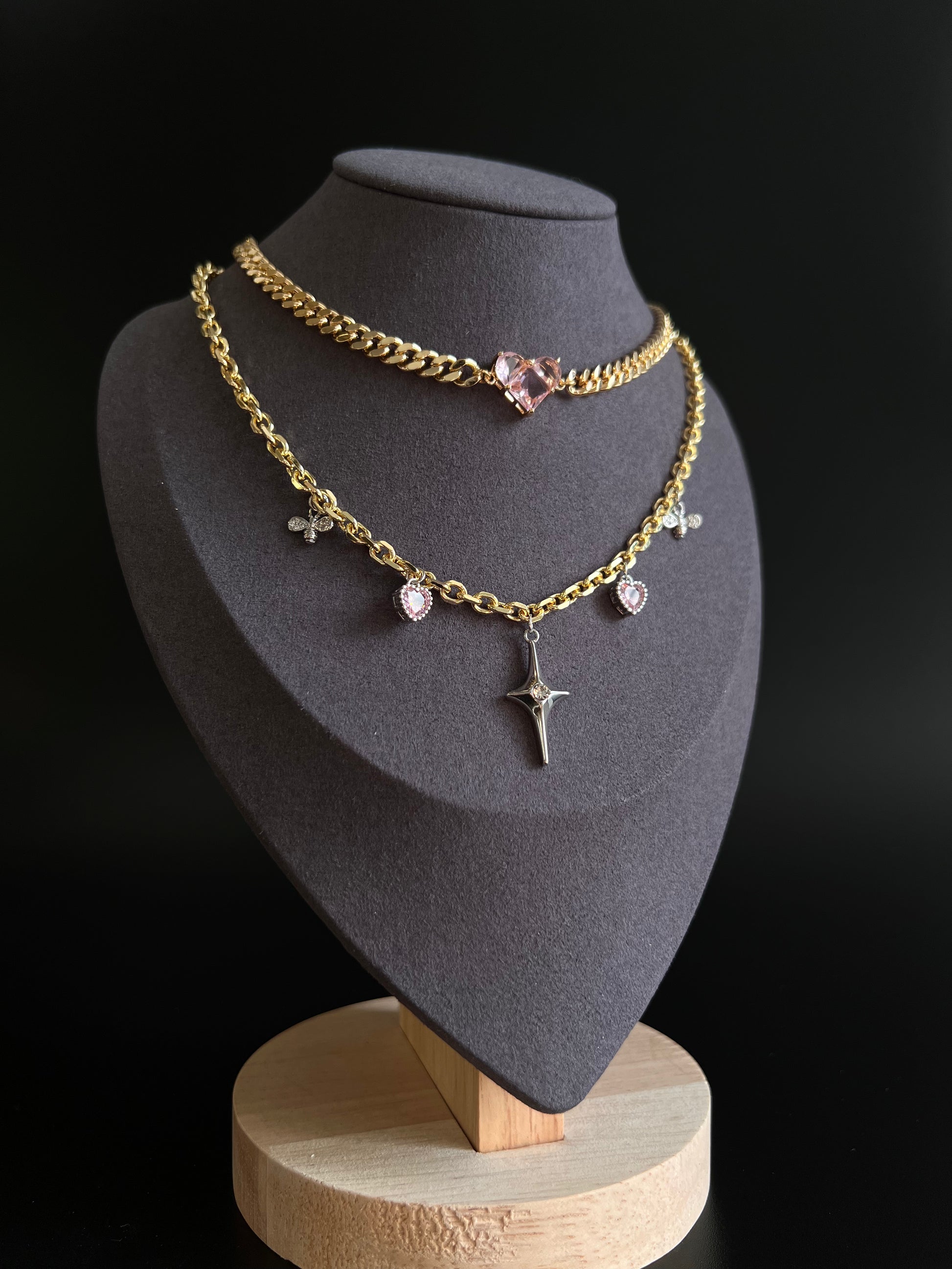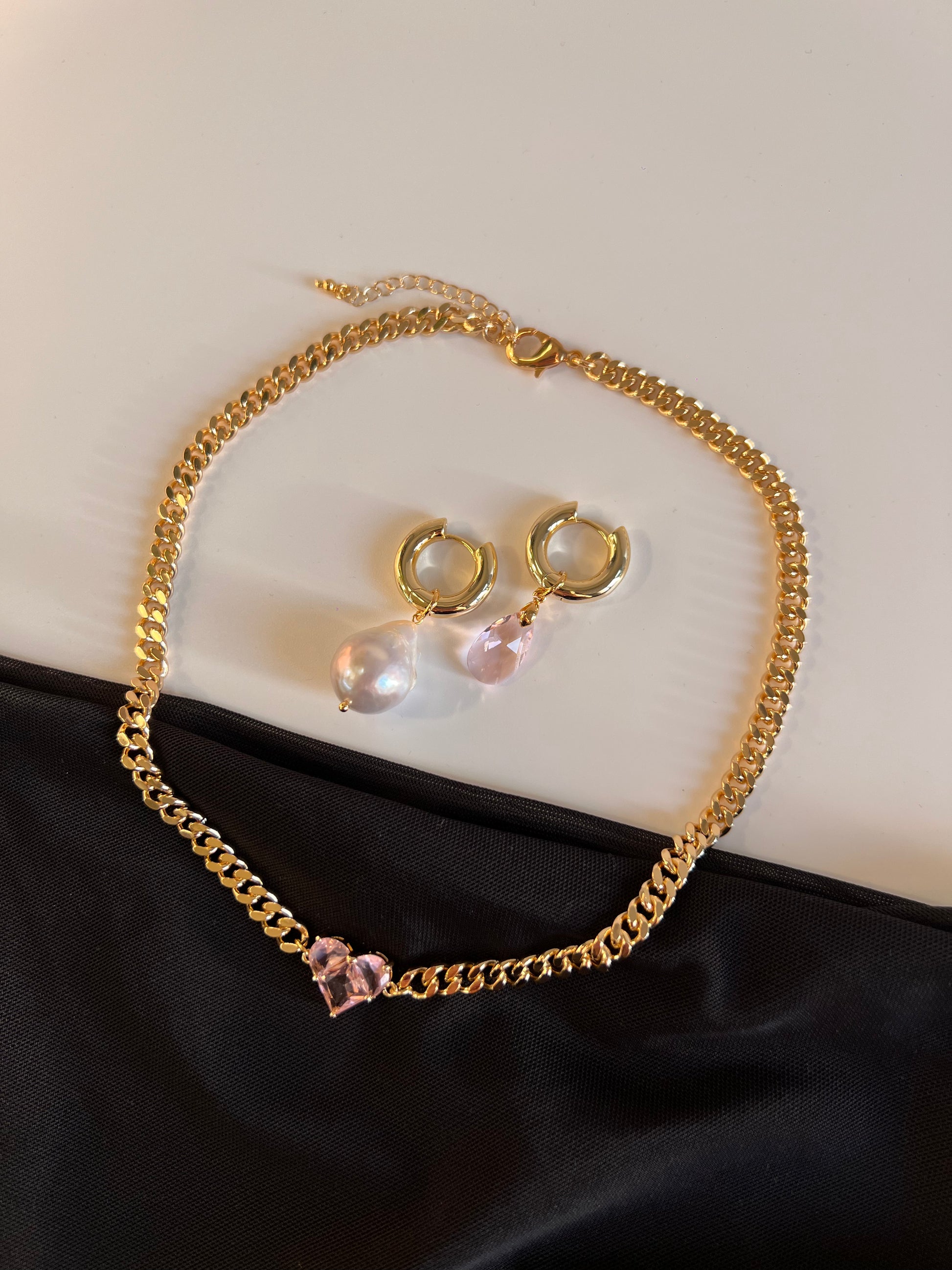 The gold-plated chain adds a touch of elegance, creating a soft glow that gracefully embraces the skin.