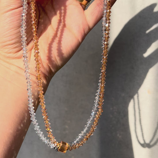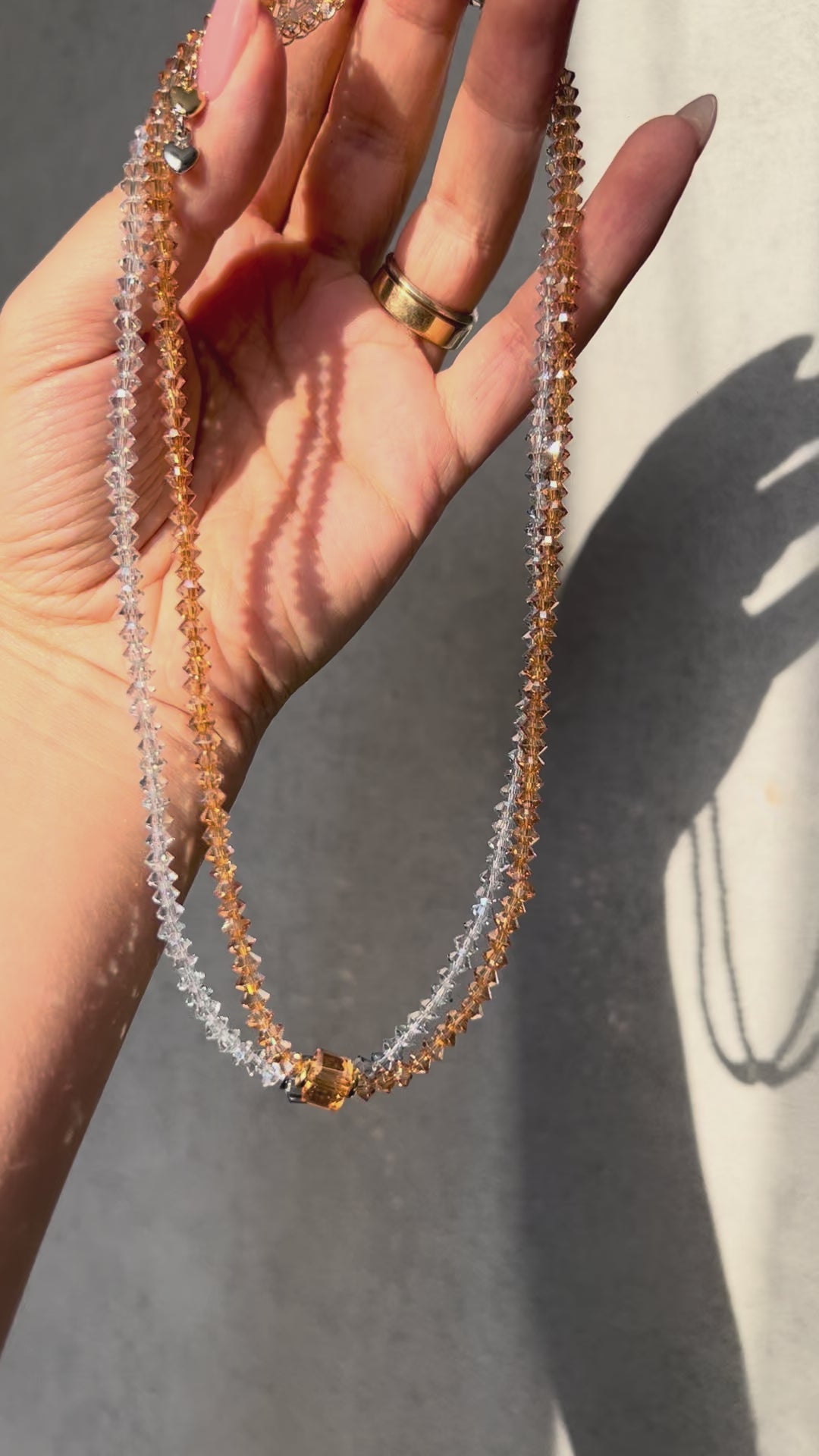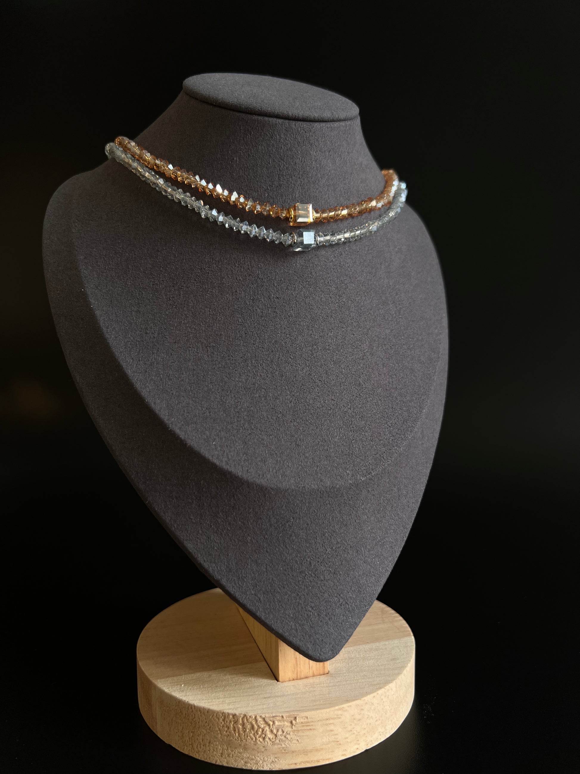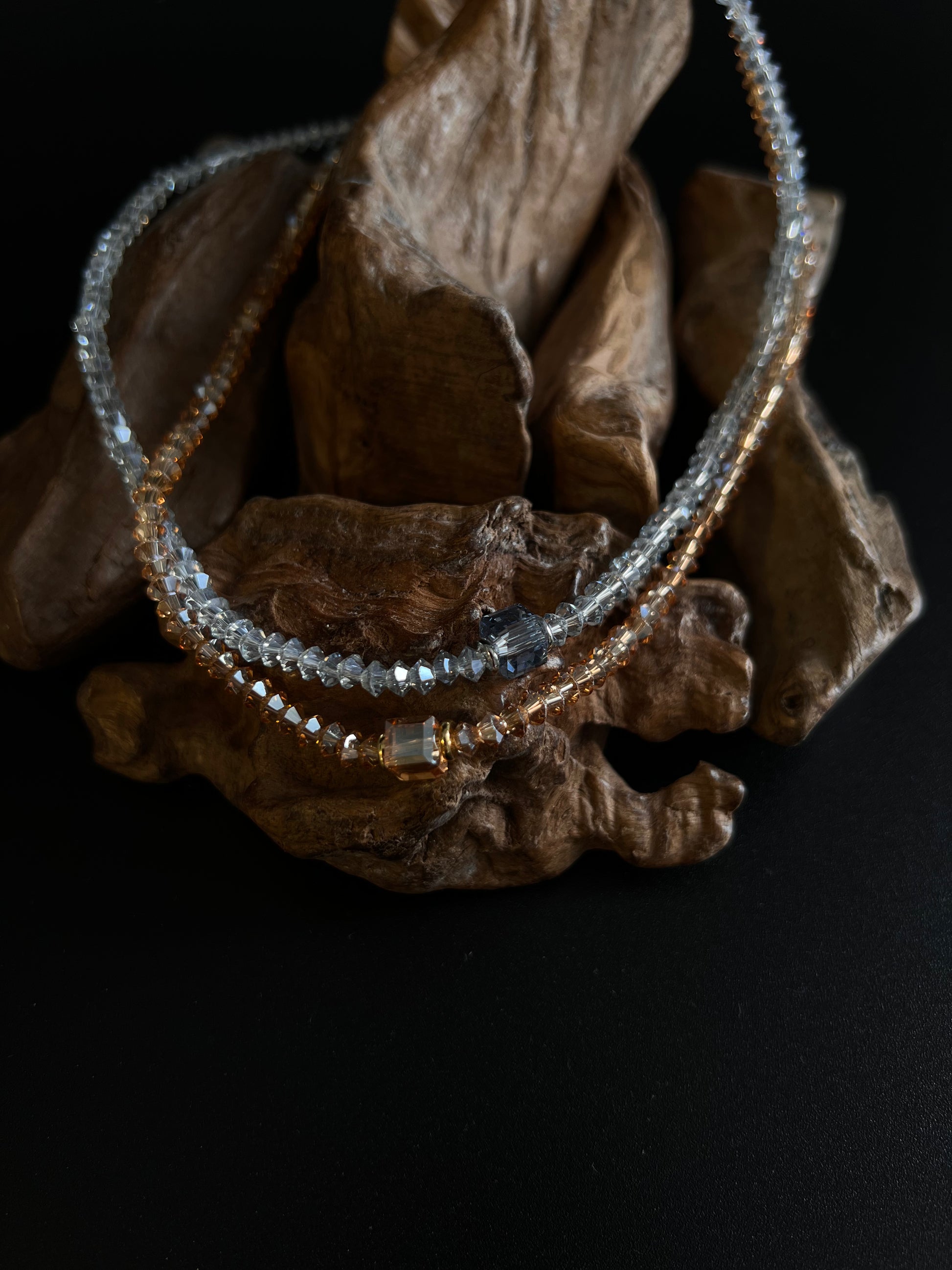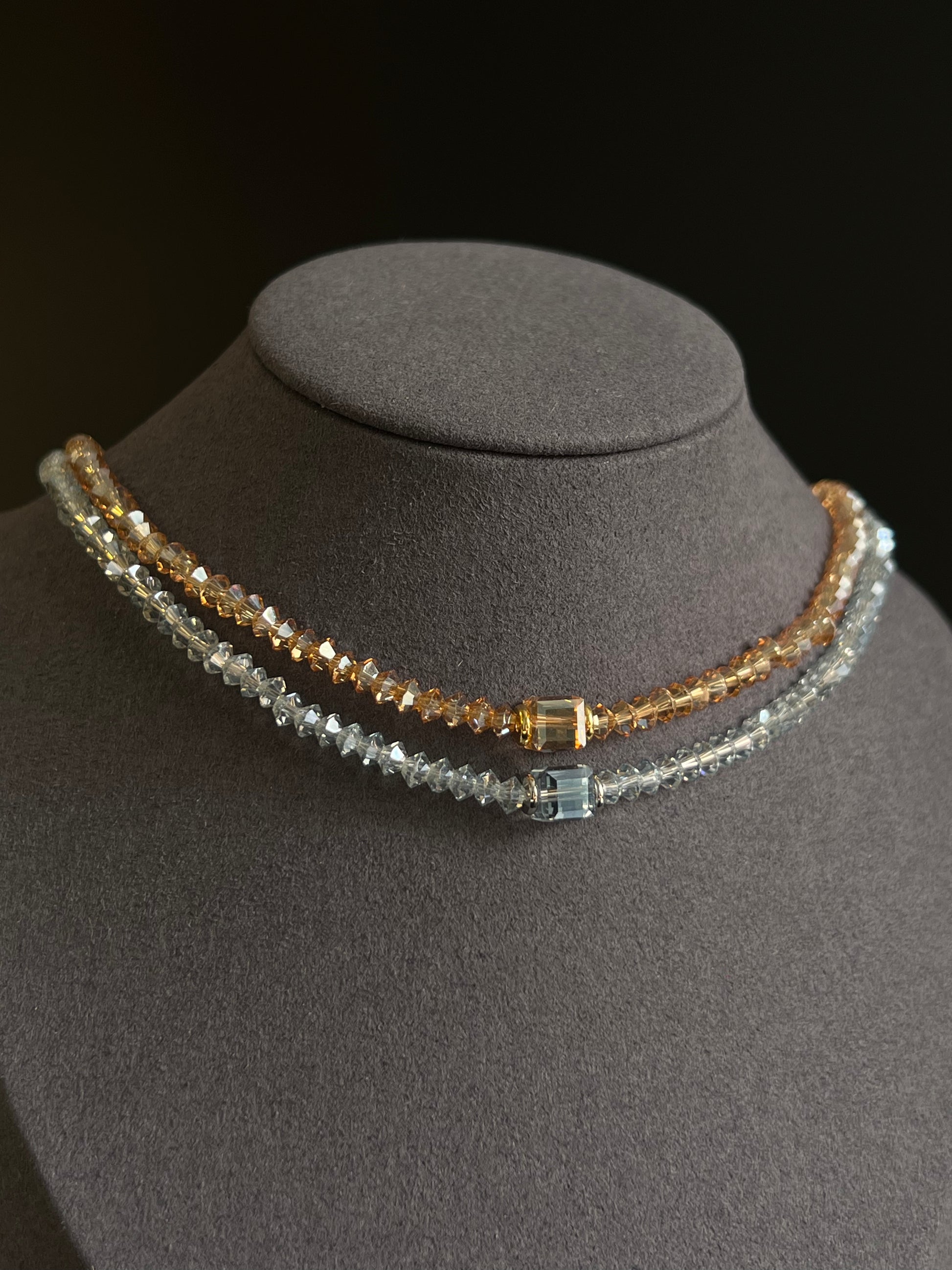 The crystal facets capture the light and reflect it in soft glimmers, filling the look with purity and calm.